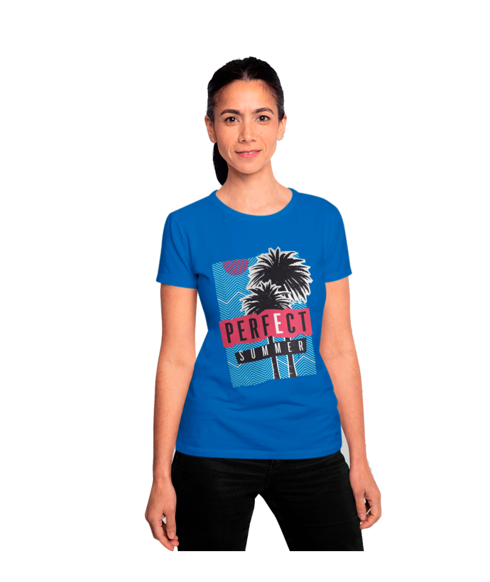 Camiseta manga corta de mujer con diseño original Palmera Azul .