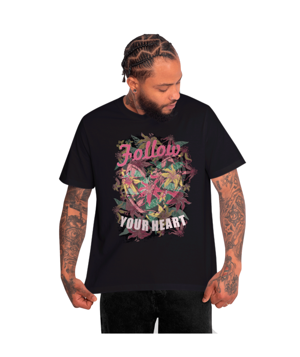 Camiseta Manga Corta Hombre Negra Your Heart
